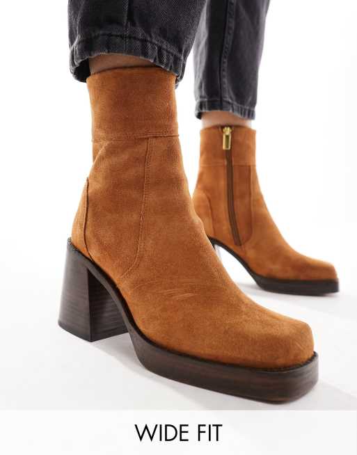 ASOS DESIGN Wide Fit Region suede mid heel boots in tan ASOS