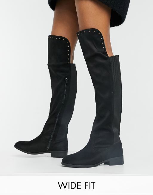 Simply Be Wide Fit knee flat boot with cleated sole in black