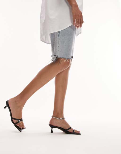Topshop Crystal premium leather kitten heel sandals with buckle in red