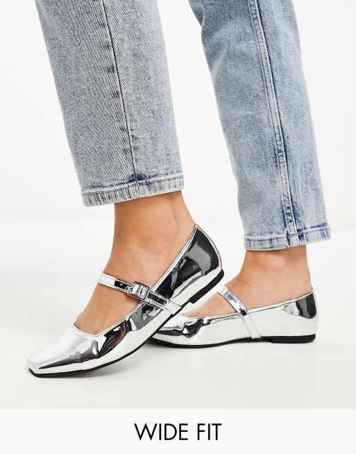 ASOS DESIGN Wide Fit Lottie mary jane ballet flats in silver