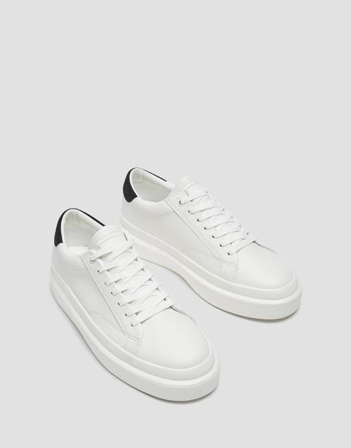 Pull Bear chunky sneakers with black back tab in white