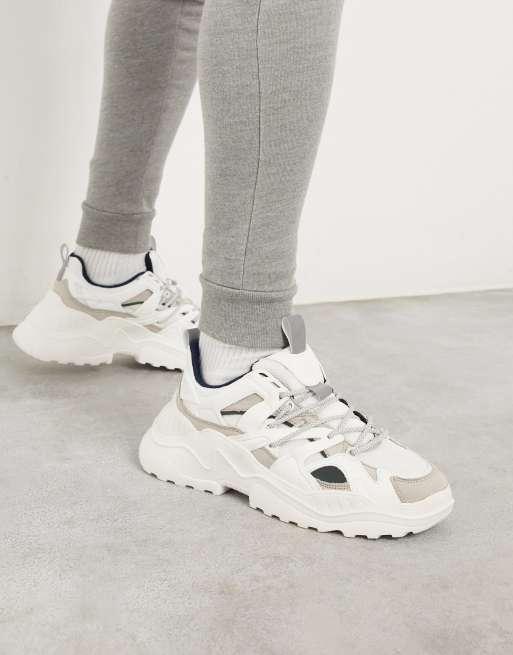 Pull Bear chunky sneakers with contrast panels in off white