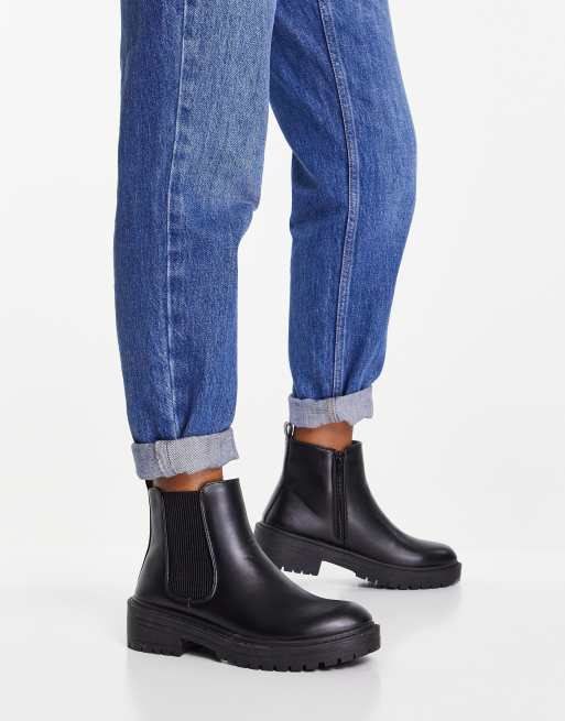 New Look flat chunky chelsea boot with cleated sole in black ASOS
