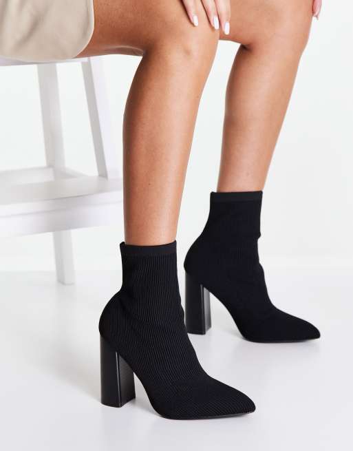 Public Desire Ribbed Pointed Stiletto Heel Sock Boots New Look