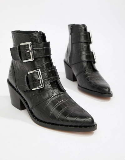 Kurt geiger denny black croc effect clearance black ankle boots with buckle detail