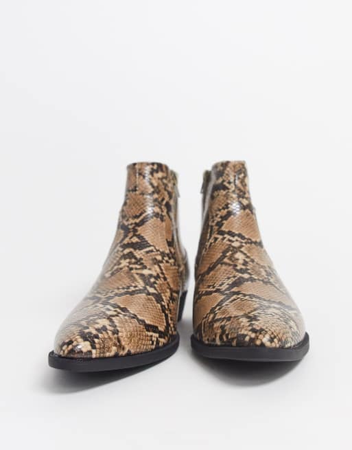 ASOS DESIGN heeled chelsea boots in snake print faux leather