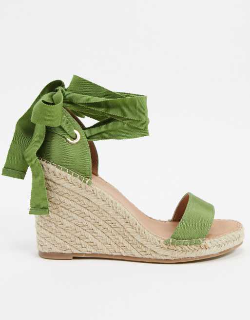 Asos clearance espadrille wedges, ASOS DESIGN Treat tie leg espadrille wedge sandals in khaki clearance