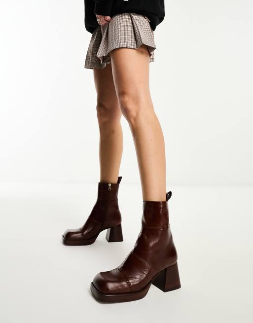 ASOS DESIGN Rhodes premium leather platform ankle boots in tan ASOS