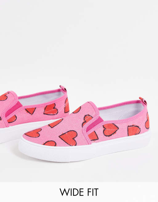 Asos clearance canvas shoes, ASOS DESIGN Wide Fit Dotty slip on canvas shoes in pink heart clearance