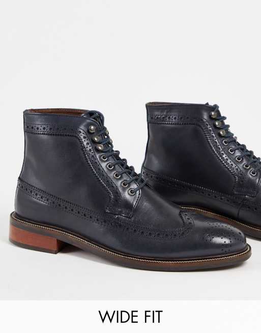 Dune London Wide Fit Carnaby brogue boots in navy leather ASOS