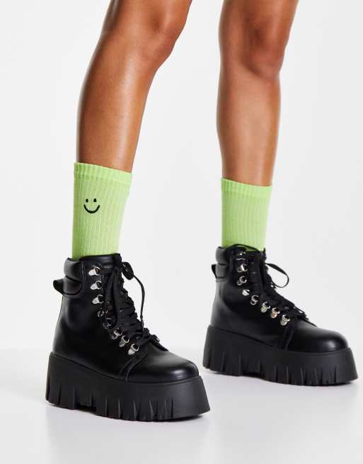 ASOS DESIGN Anastasia chunky hiker lace up boots in black
