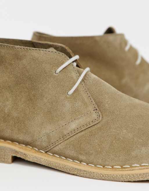 Asos design desert boots in clearance stone suede with leather detail, ASOS DESIGN Wide Fit desert chukka boots in stone suede clearance