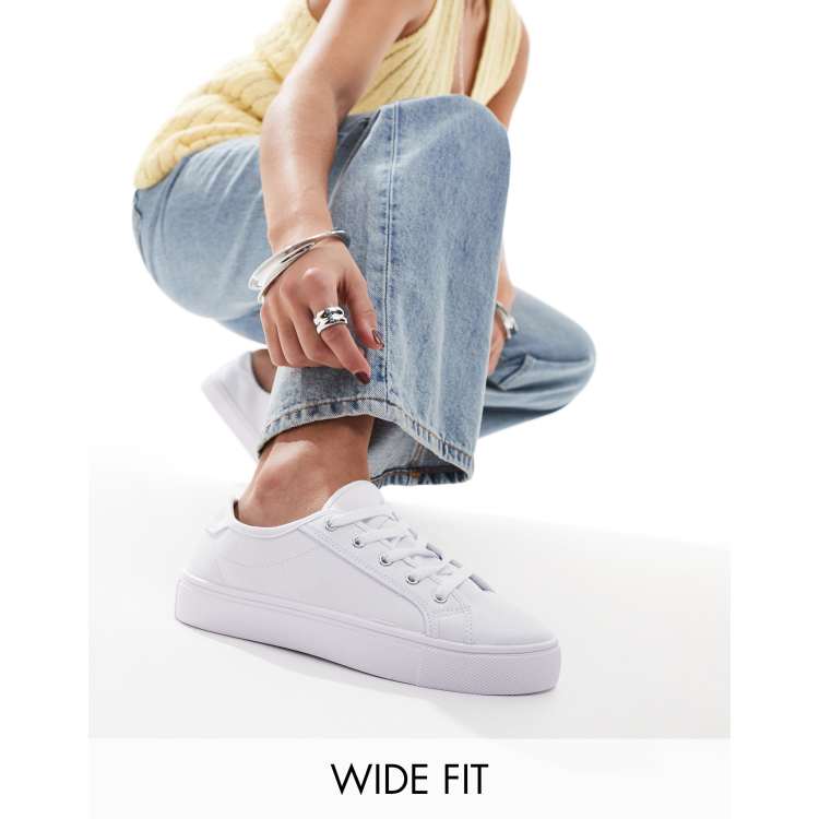ASOS DESIGN Wide Fit Dizzy lace up sneakers in white ASOS