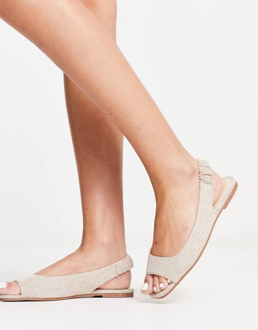 ASOS DESIGN Lemonade peep toe ballet flats in natural fabrication