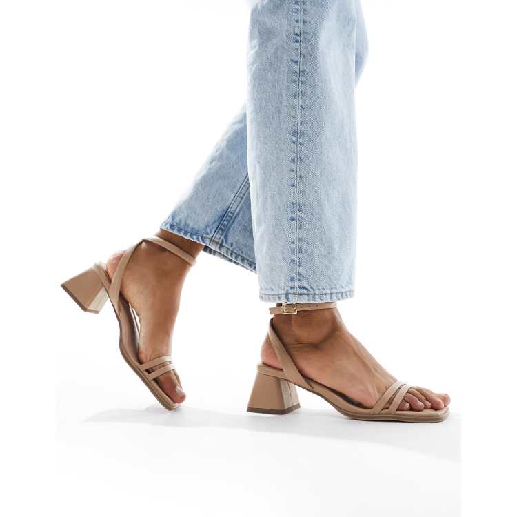 ASOS DESIGN Honeydew mid block heeled sandals in beige ASOS