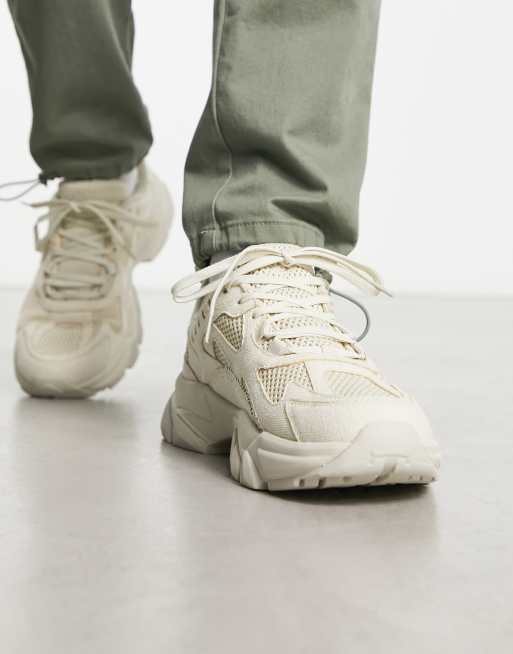 ASOS DESIGN chunky trainers in stone mesh with textile panels ASOS