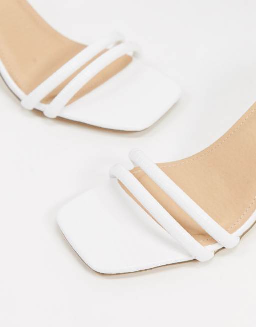 Truffle Collection thin strap mid heeled square toe sandals in white