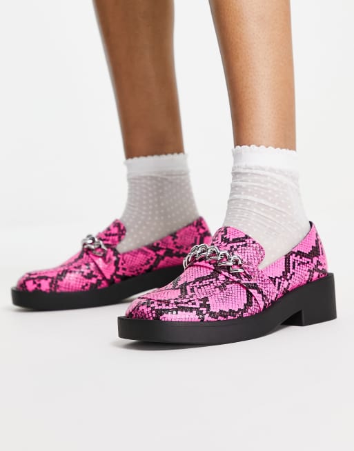ASOS DESIGN Melba heart chain flat loafers in pink snake ASOS