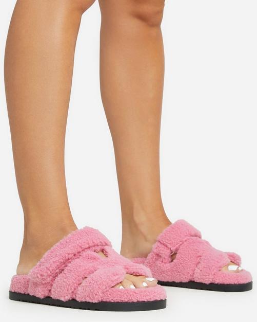 Bop It Up Double Buckle Strap Flat Slider Sandal In Black Faux