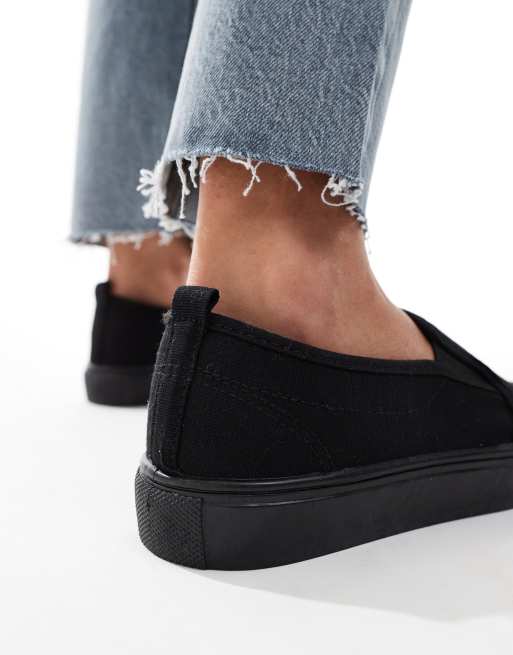 ASOS DESIGN Wide Fit Dotty slip on plimsolls in black ASOS