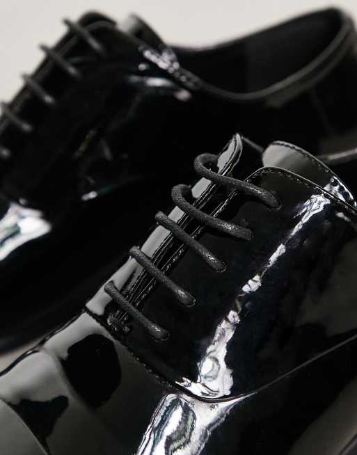 ASOS DESIGN formal lace up shoes in black patent faux leather ASOS