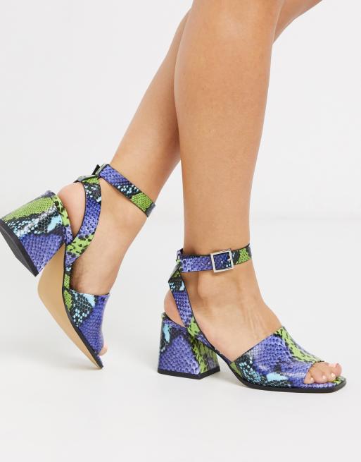 ASOS DESIGN Helsa mid heeled sandals in snake
