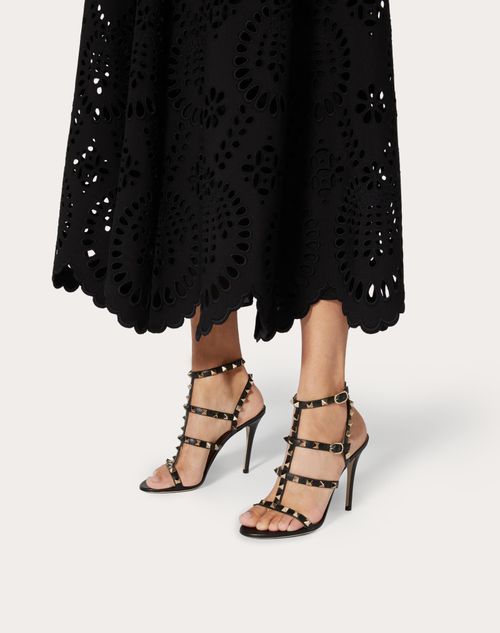 Rockstud Calfskin Ankle Strap Sandal 100 Mm for Woman in Black