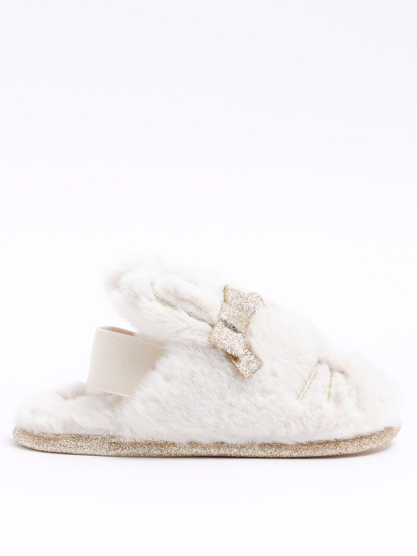 River Island Girls Faux Fur Diamante Slippers Cream Very Ireland