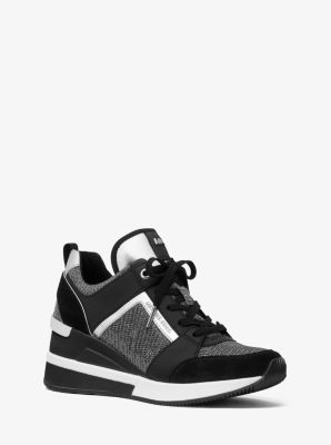 Michael kors georgie clearance woven leather trainer, Georgie Leather and Glitter Chain Mesh Trainer Michael Kors clearance
