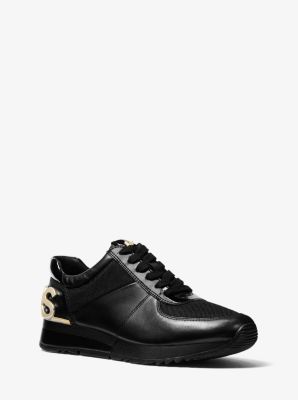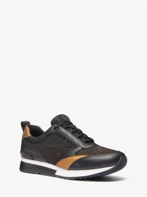 Allie Embellished Leather and Canvas Trainer Michael Kors
