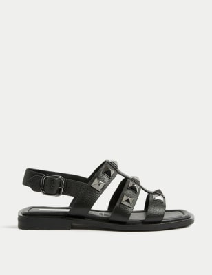 Wide Fit Leather Studded Flat Sandals