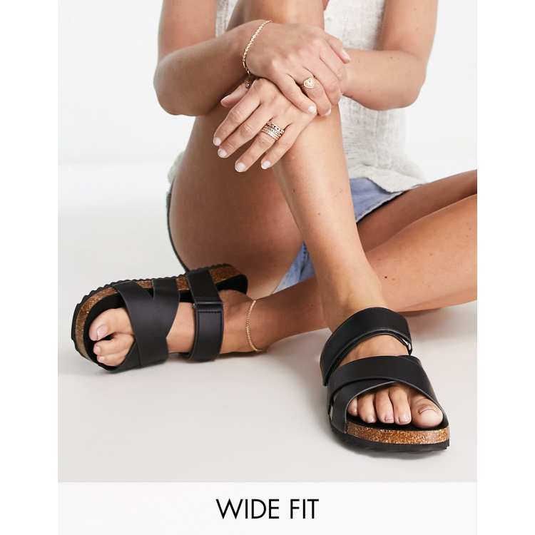 Black wide fit clearance flat sandals