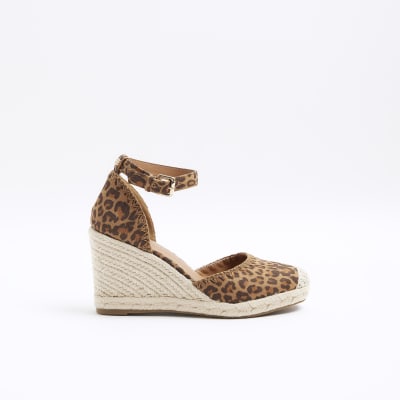 River island espadrille clearance wedges, Brown animal print espadrille wedge sandals River Island clearance