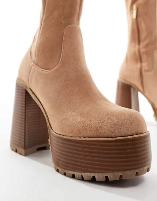 Me too cara clearance platform bootie, ASOS DESIGN Keri over the knee platform boots in camel ASOS clearance