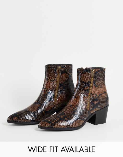 ASOS DESIGN heeled chelsea boots with pointed toe in faux snake ASOS