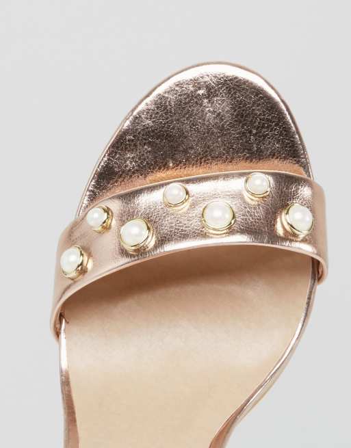 Gold clearance pearl sandals, Public Desire Oklahoma Rose Gold Pearl Detail Heeled Sandals clearance