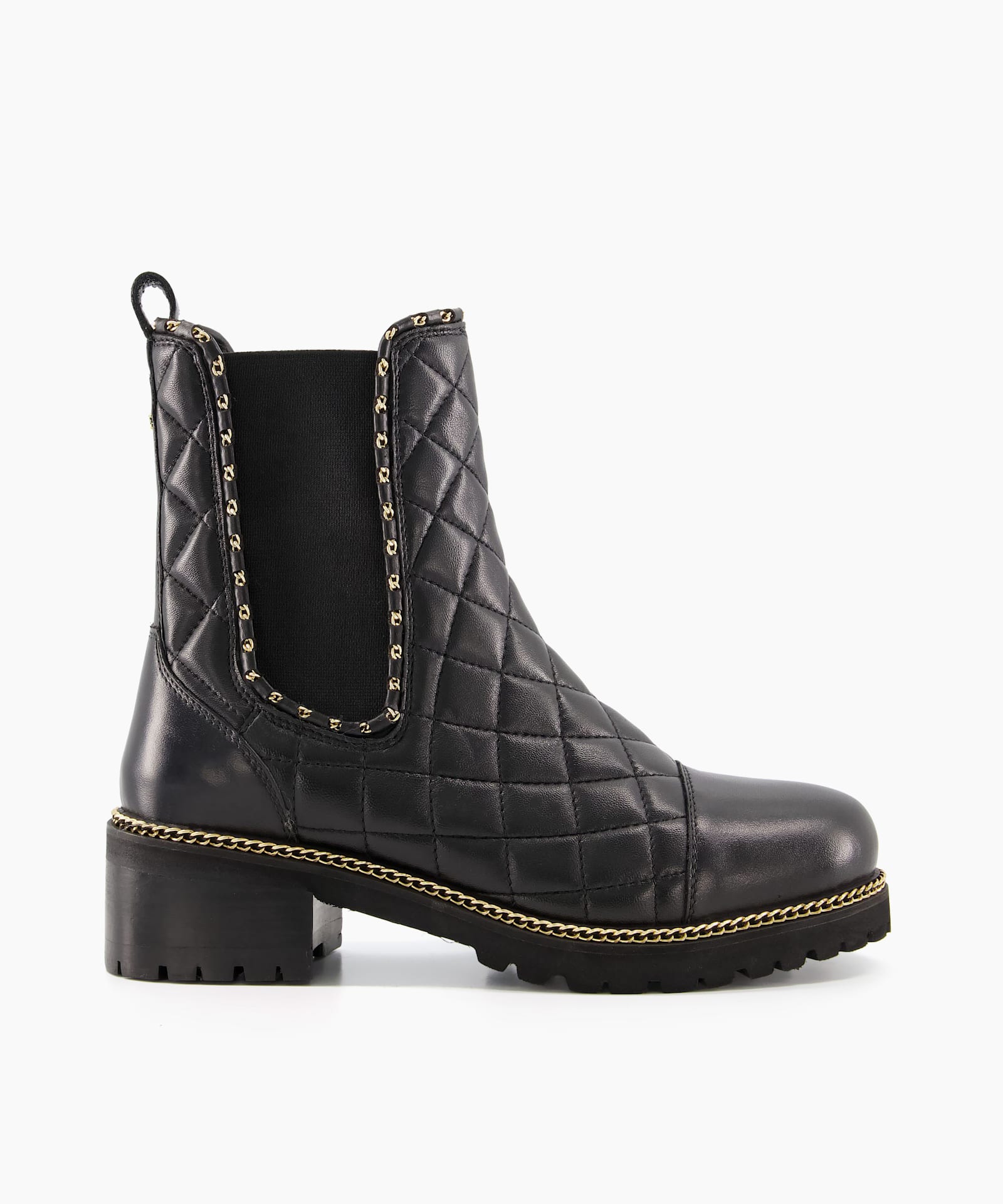 Black Quilted Chain Trim Chunky Chelsea Boots New Look