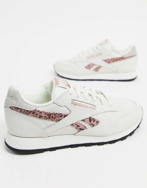 Reebok Classic leather sneakers in chalk with leopard print detailing