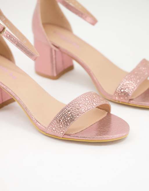 Simply Be Wide Fit roxie block heeled sandals in rose gold ASOS