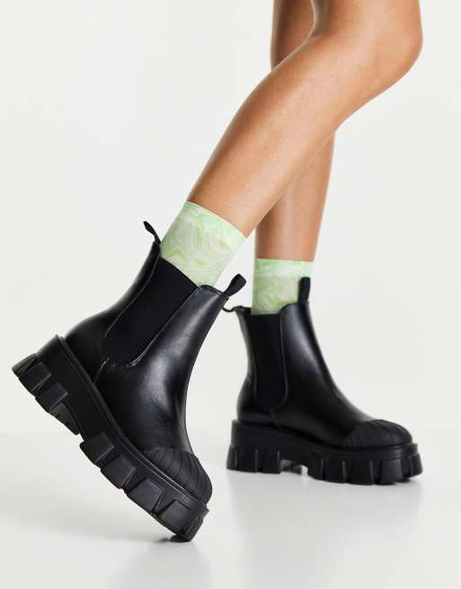 Truffle Collection chunky chelsea boots in black with exaggerated sole