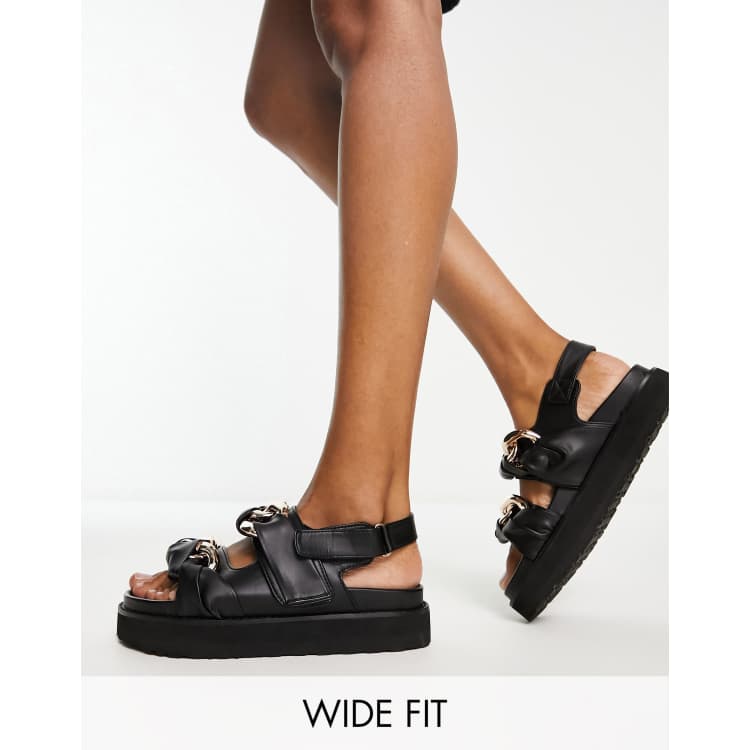 Simply Be Wide Fit chunky chain grandad flat sandals in black