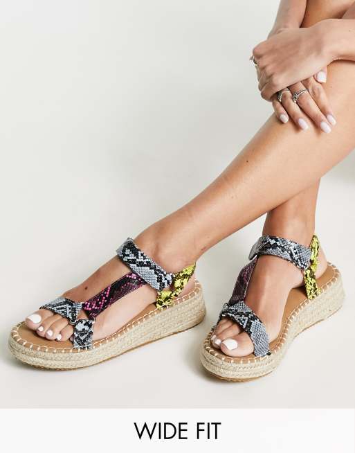Glamorous Wide Fit velcro strap flatform espadrille sandals in multi
