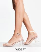 Public Desire Wide Fit Afternoon mid clear heeled sandals ASOS