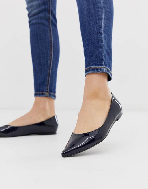 ASOS DESIGN Latch pointed ballet flats in navy ASOS