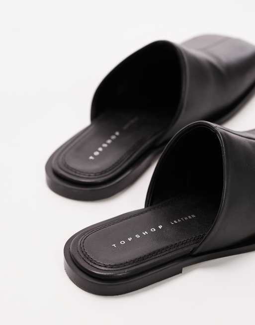 Topshop Cici leather square toe flat mules in black