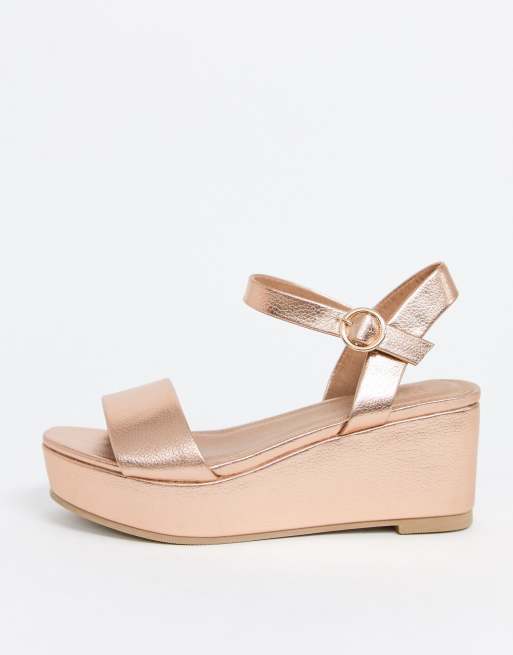 Flatforms clearance rose gold, ASOS DESIGN Wide Fit Tallie flatform sandals in rose gold clearance