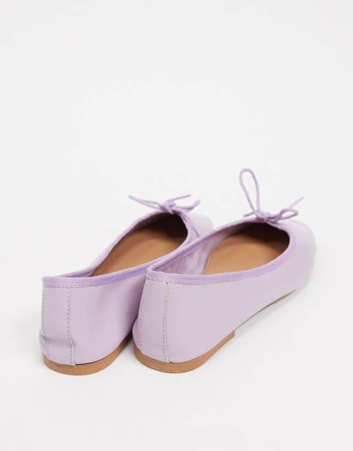 ASOS DESIGN Wide Fit Layer leather bow ballet flats in lilac
