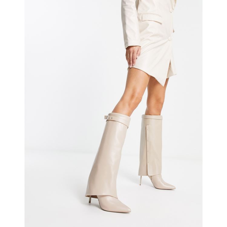 ASOS DESIGN Clearly high heeled fold over knee boots in cream