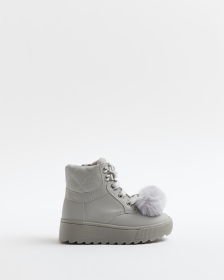 River island grey clearance boots, Mini girls Grey Pom Pom High Top Boots River Island clearance