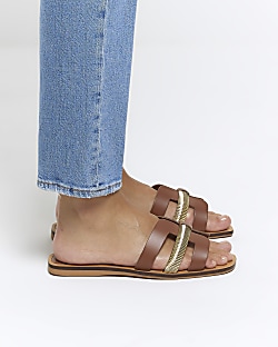 River island gucci clearance shoes, Brown Wide Fit Leather Flat Sandals River Island clearance